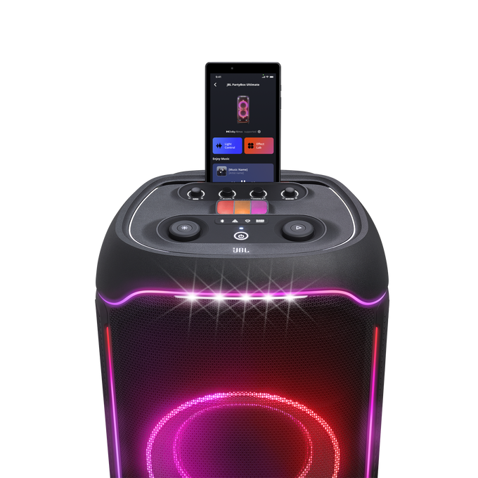 JBL PartyBox Ultimate là dòng loa party cao cấp với công suất lớn và hệ thống ánh sáng LED tích hợp. Khi kết hợp với màn hình LED, hệ thống âm thanh và hình ảnh có thể được đồng bộ để tạo ra các hiệu ứng visual theo nhịp nhạc.