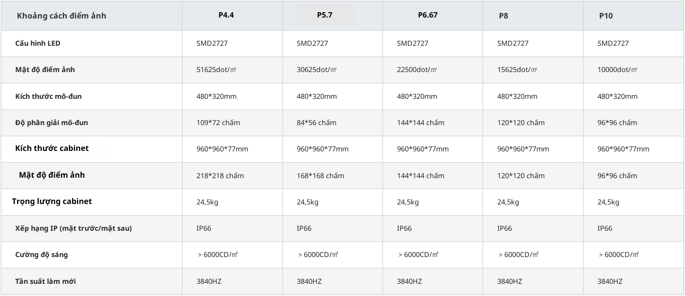 Thông số kỹ thuật màn hình LED 3D ngoài trời